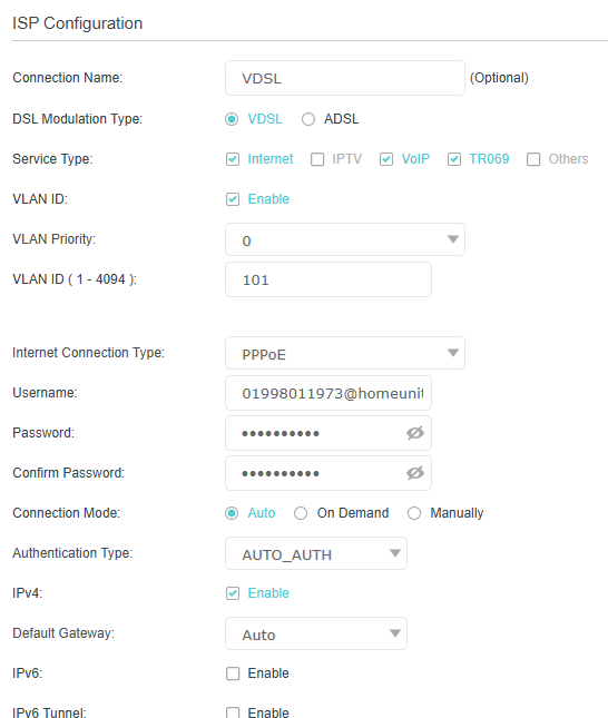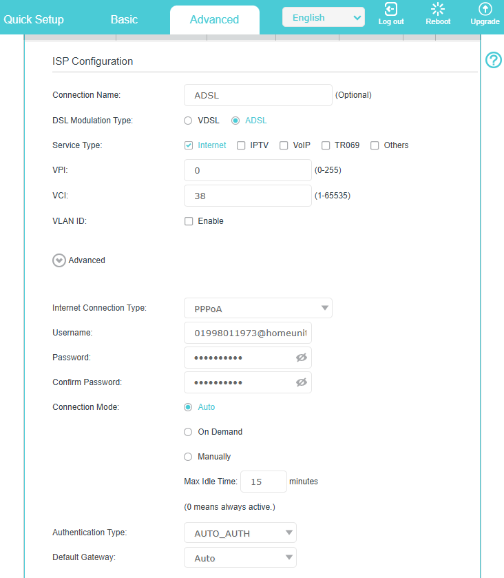Depending on what type of broadband you have will depend on which option to choose (from DSLWAN or EWAN)