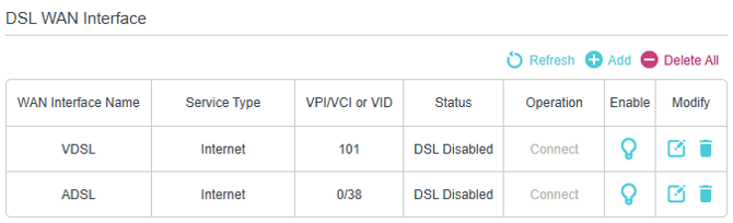 - Now you have clicked on DSLWAN, You should see a row in the Internet Setup section that says VDSL.